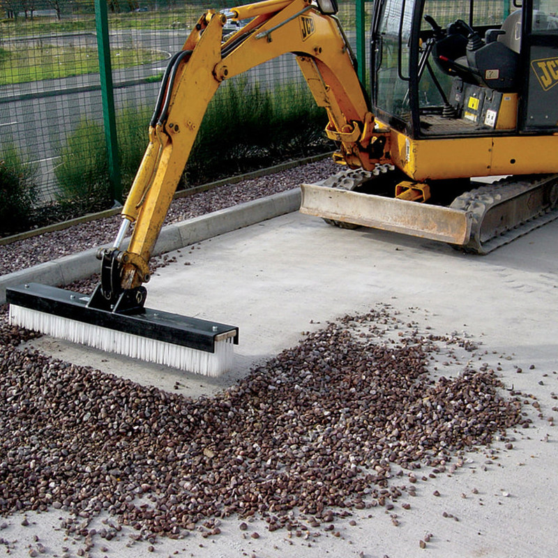 Como todas as grandes ideias, esta é muito simples, mas altamente eficaz. varrer usando o poder da sua escavadora - poupar tempo e mão-de-obra!A escova larga tem várias fileiras de cerdas de polipropileno duráveisAs cerdas podem ser desabrochadas e substituídas.